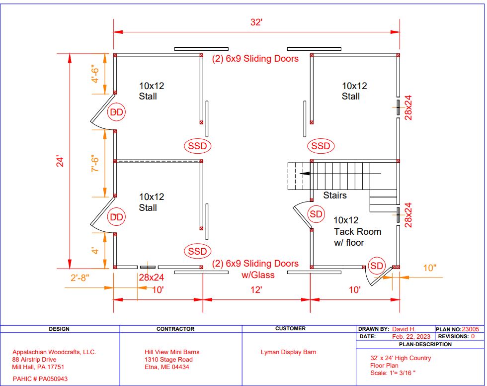 ~ 2-6×8 sliding doors per end of 12’x24′ center aisle