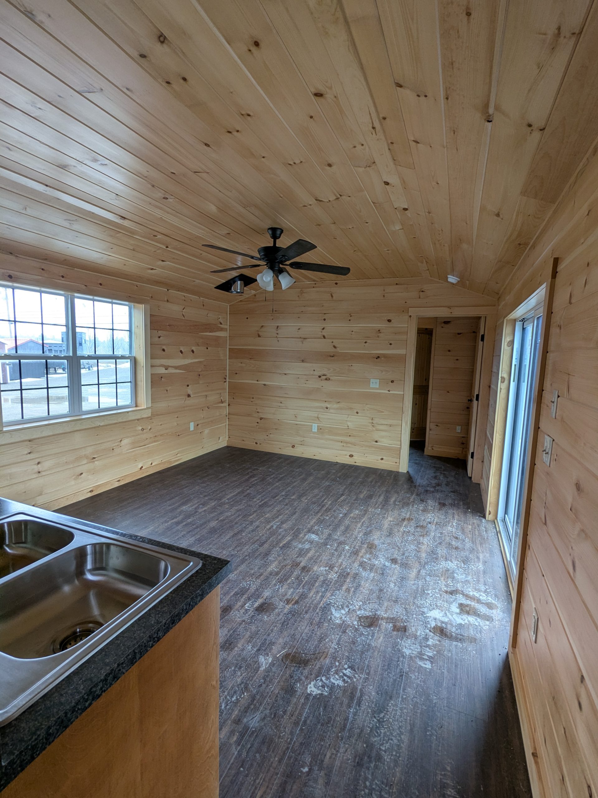 This 14×44 Acadia camp offers a comfortable space with a layout that boasts of two bedrooms, a full bath, Kitchenette, living room and hookups for a washer and dryer. It is a great escape for relaxing, hosting guests, or weekend getaways. Quality construction finished off with pine interior and a 5 year warranty, makes it a practical choice for year-round use