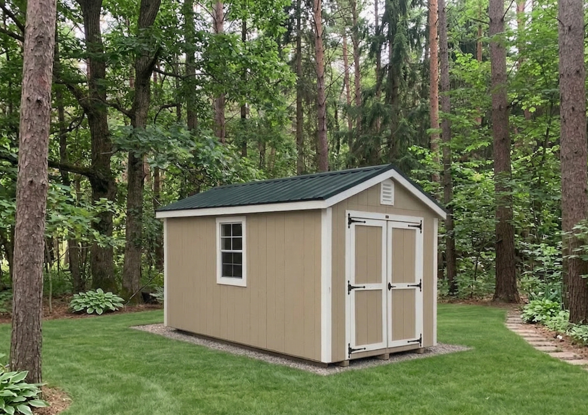 Get the perfect balance of size and functionality with this 8×14 storage shed, ideal for tools, lawn equipment, or seasonal items. Built with a solid floor system, double doors, a pressure treated ramp, and windows for natural light, it’s made to weather Maine conditions.