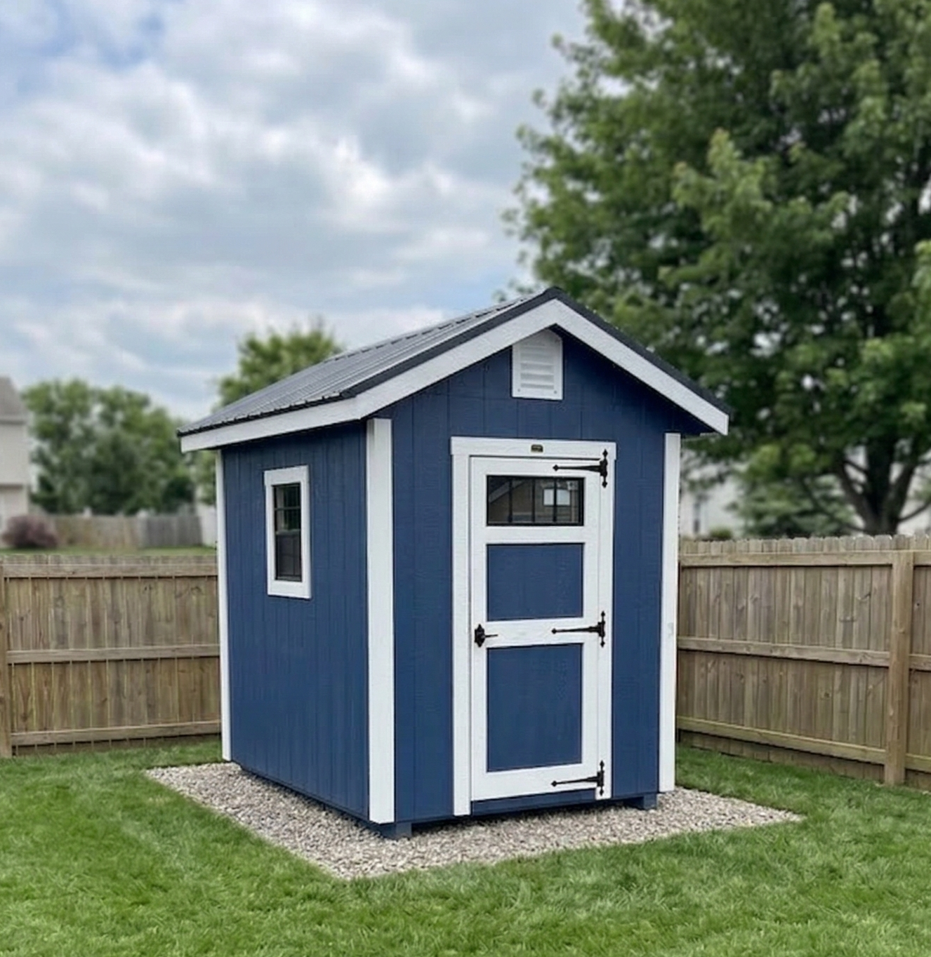 Make the most of your backyard with this 6×8 shed, perfect for smaller spaces. Built with quality materials, it is equipped with windows for natural light. Ideal for tools or toys, this shed is a practical solution to your storage needs.