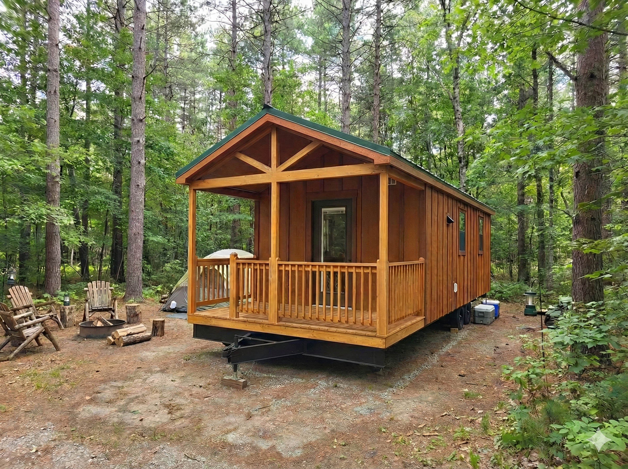 The 12×30 Park Model RV delivers the comfort of a traditional Maine camp with the convenience of RV placement. Featuring a warm pine interior, full kitchen, spacious bathroom, and front porch, it’s well suited for RV campgrounds or private land, giving you a flexible, low-maintenance getaway wherever you choose to place it.