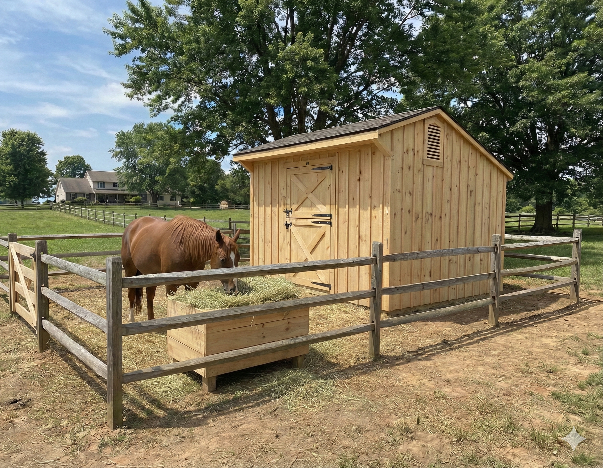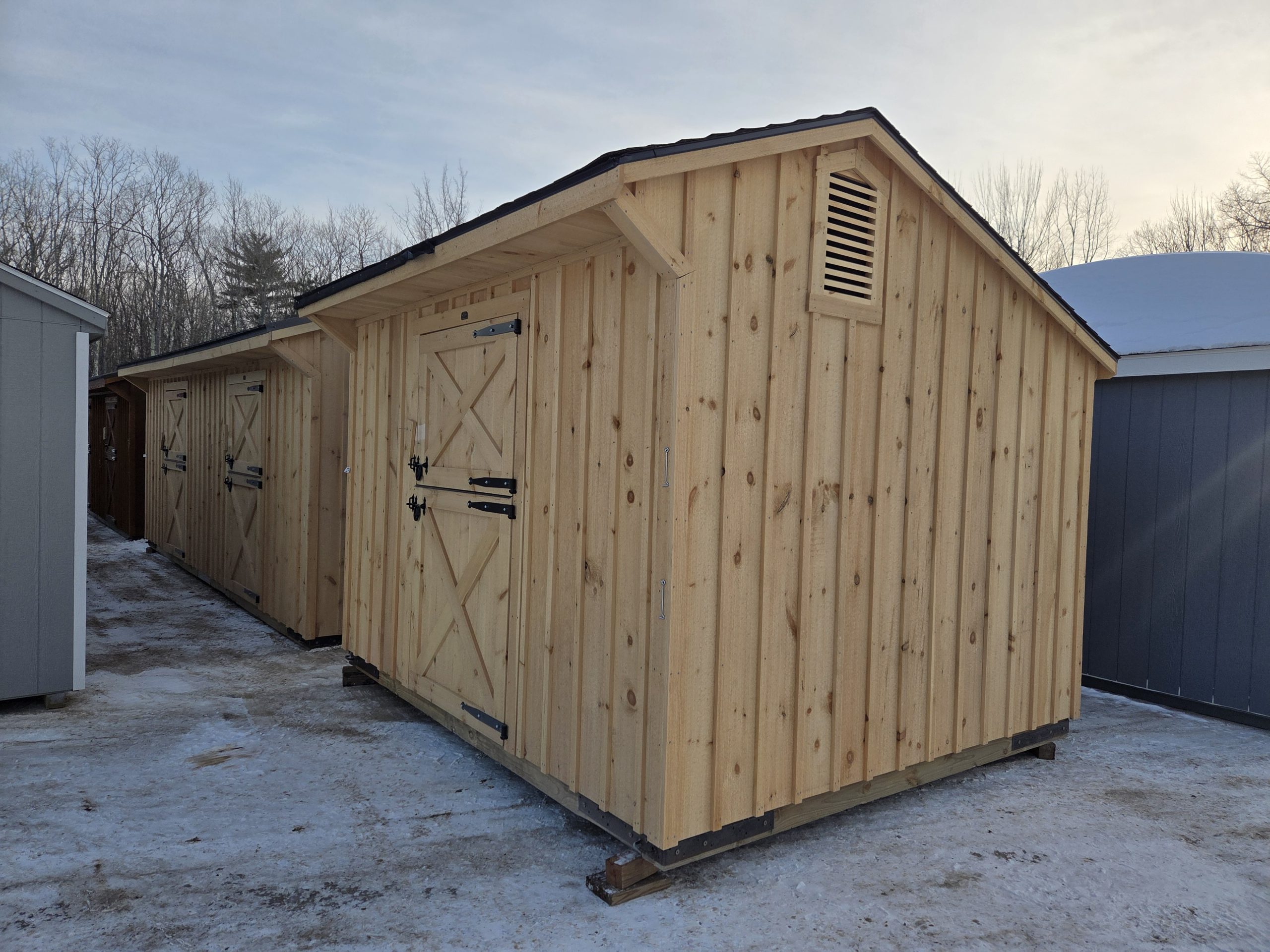 This 10Ă—12 barn offers an easy, durable solution to your homestead needs. It features a strong 6Ă—6 treated frame, classic board-and-batten siding, Dutch doors for easy access, and a sliding window for light and ventilation. With delivery across Maine included, it’s a ready to go option for your horse, goats or other farm needs that will last for years to come.