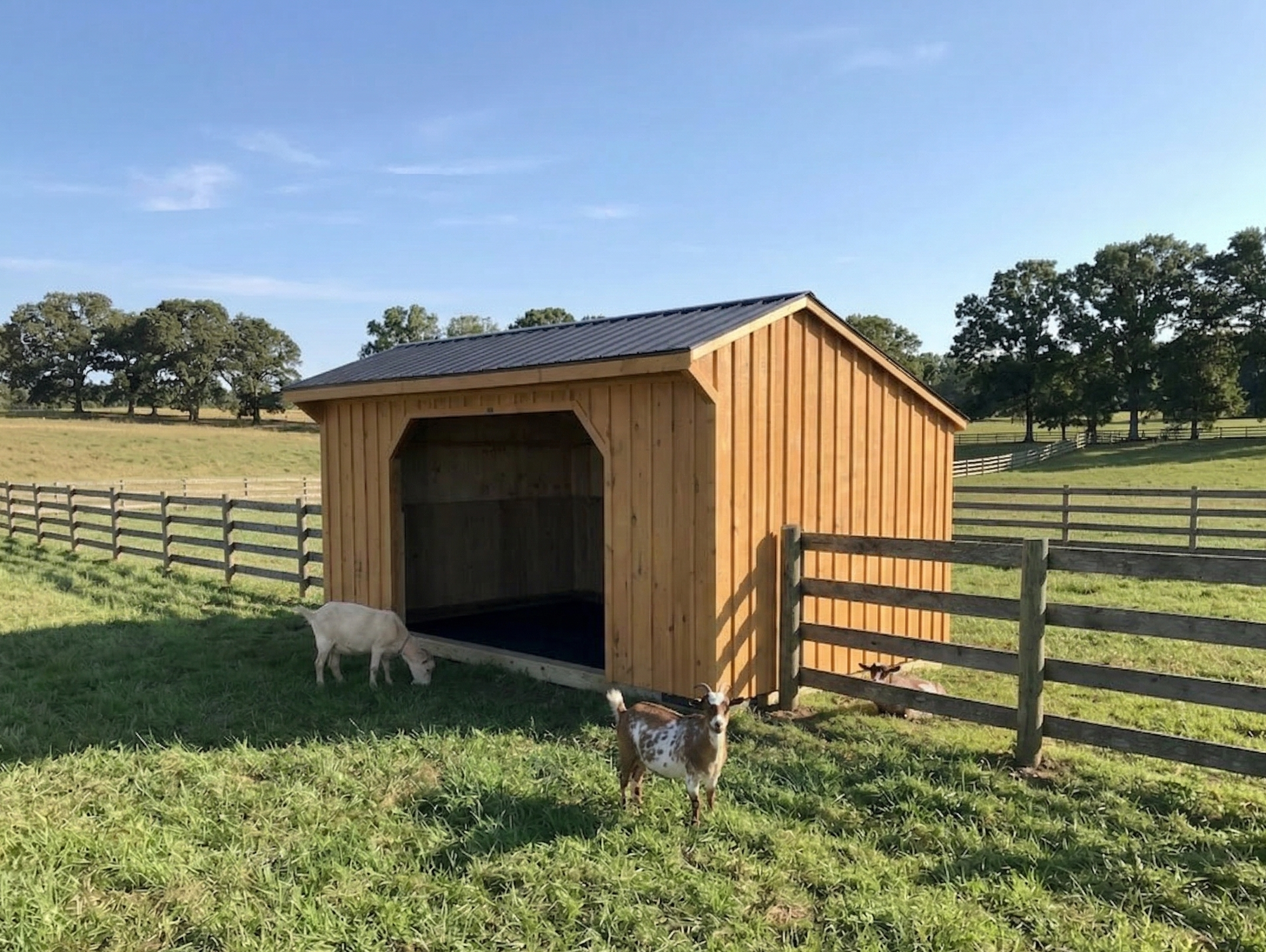 Give your animals reliable shelter with this spacious 10×18 run-in shed. The open-front layout allows easy access while providing shelter from the elements—ideal for horses, goats, and other farm animals.