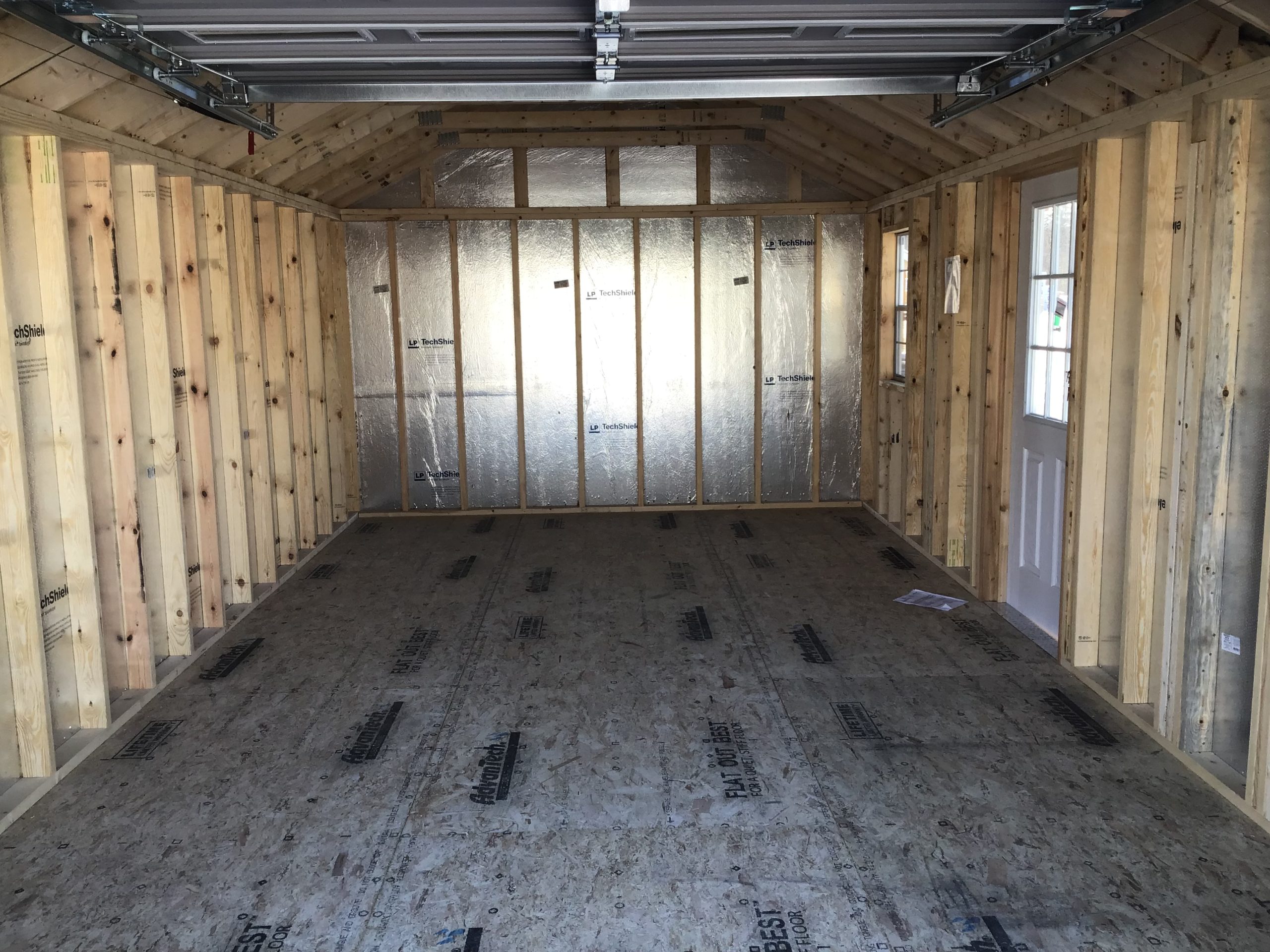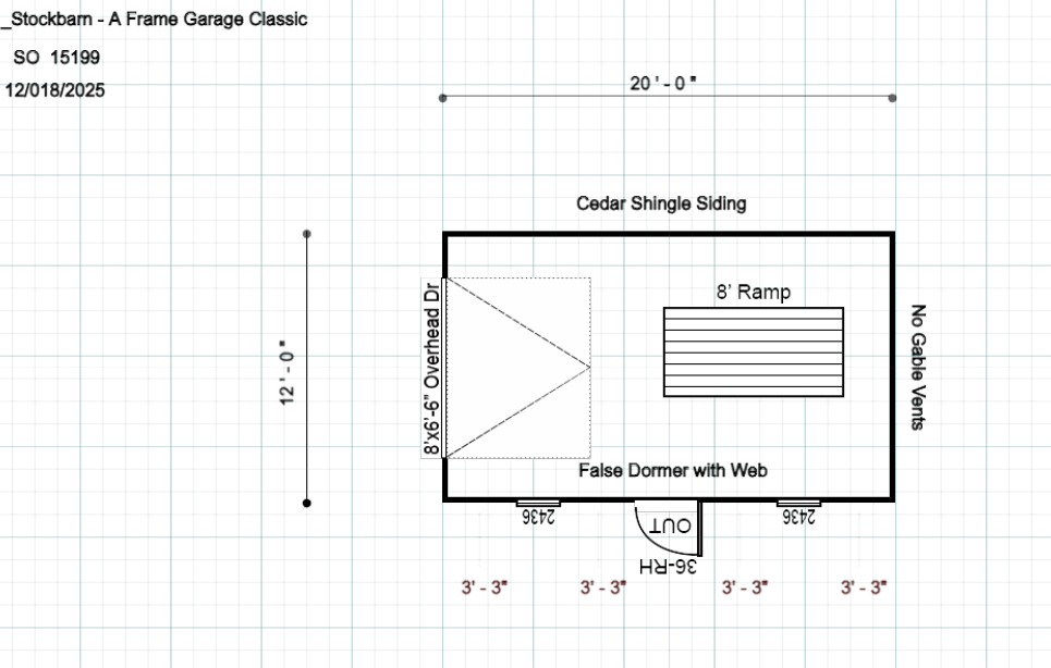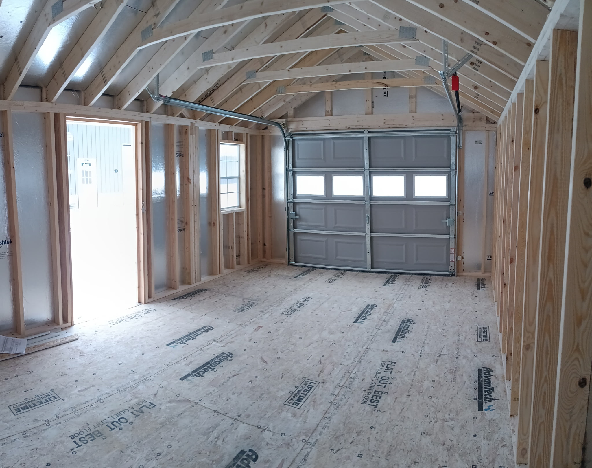 A classic A-frame garage with cedar shake siding and durable construction, perfect for Maine’s varied seasons. It includes a roomy overhead door with windows, a side entry door, solid flooring, and windows for natural light. Ideal for vehicle shelter, equipment storage, or workshop space with Maine delivery included.