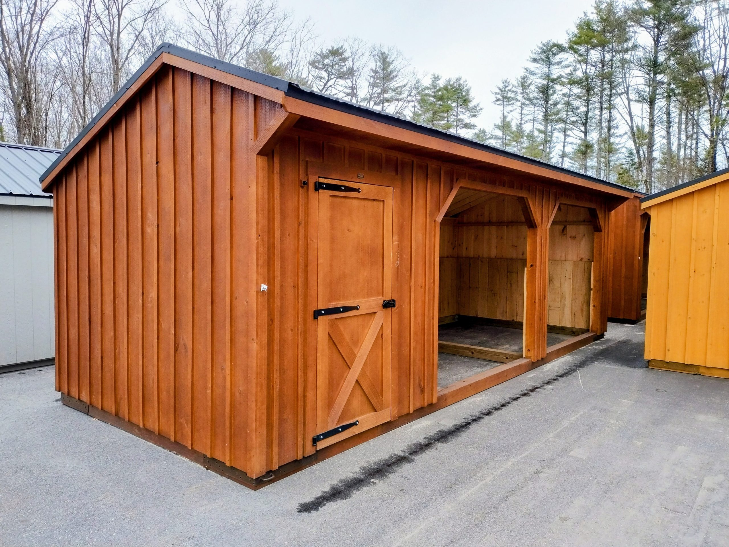 All Prices Include Maine Delivery Barn Color: Butternut Roof Color: Black Metal 10×26 Run-In Shed Oak kick-board 4′ high Pressure Treated 6×6 frame around bottom Collar ties every 48″ on center Metal roofing Pine board-and-batten siding/w urethane Large run in area with 6×10 storage room Rent To Own: $643.81/24 mo $536.51/36 mo $438.96/48 mo Rent […]