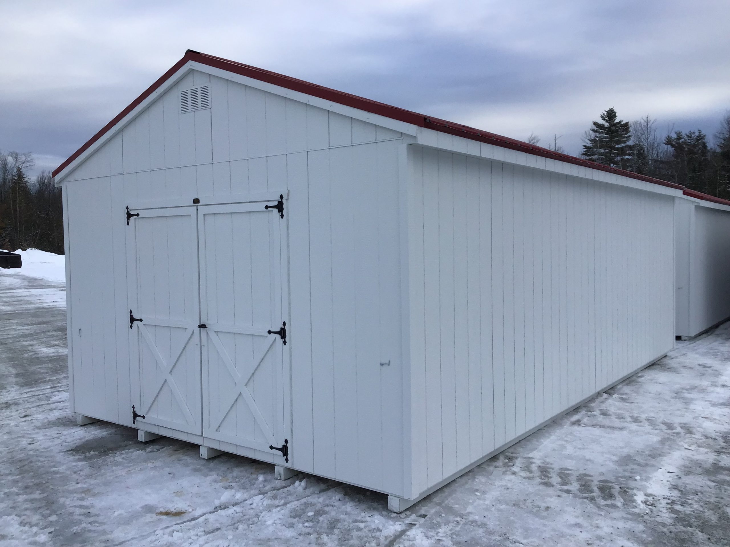 This spacious 13’4″x24′ storage building offers plenty of room for equipment, tools, and seasonal items. Built for Maine weather, it features 6′ wide double doors and a pressure treated ramp for easy access. A practical, long-lasting solution to keep your property organized and clutter-free.