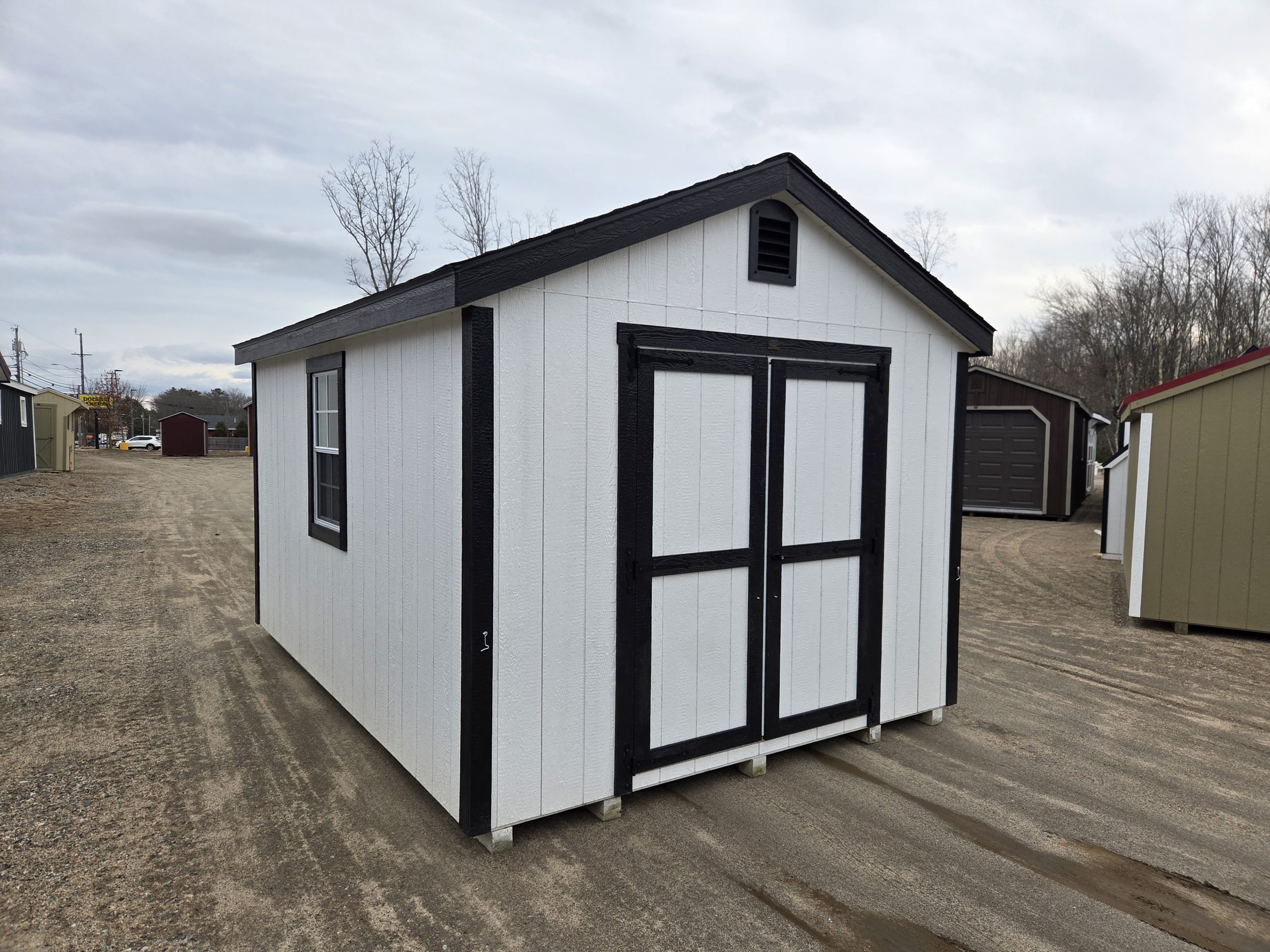 This 10×14 A-Frame Plus shed provides valuable space for storing your mower, snow blower, lawn furniture, etc. Maximize your space when you utilize the 4′ deep overhead loft.