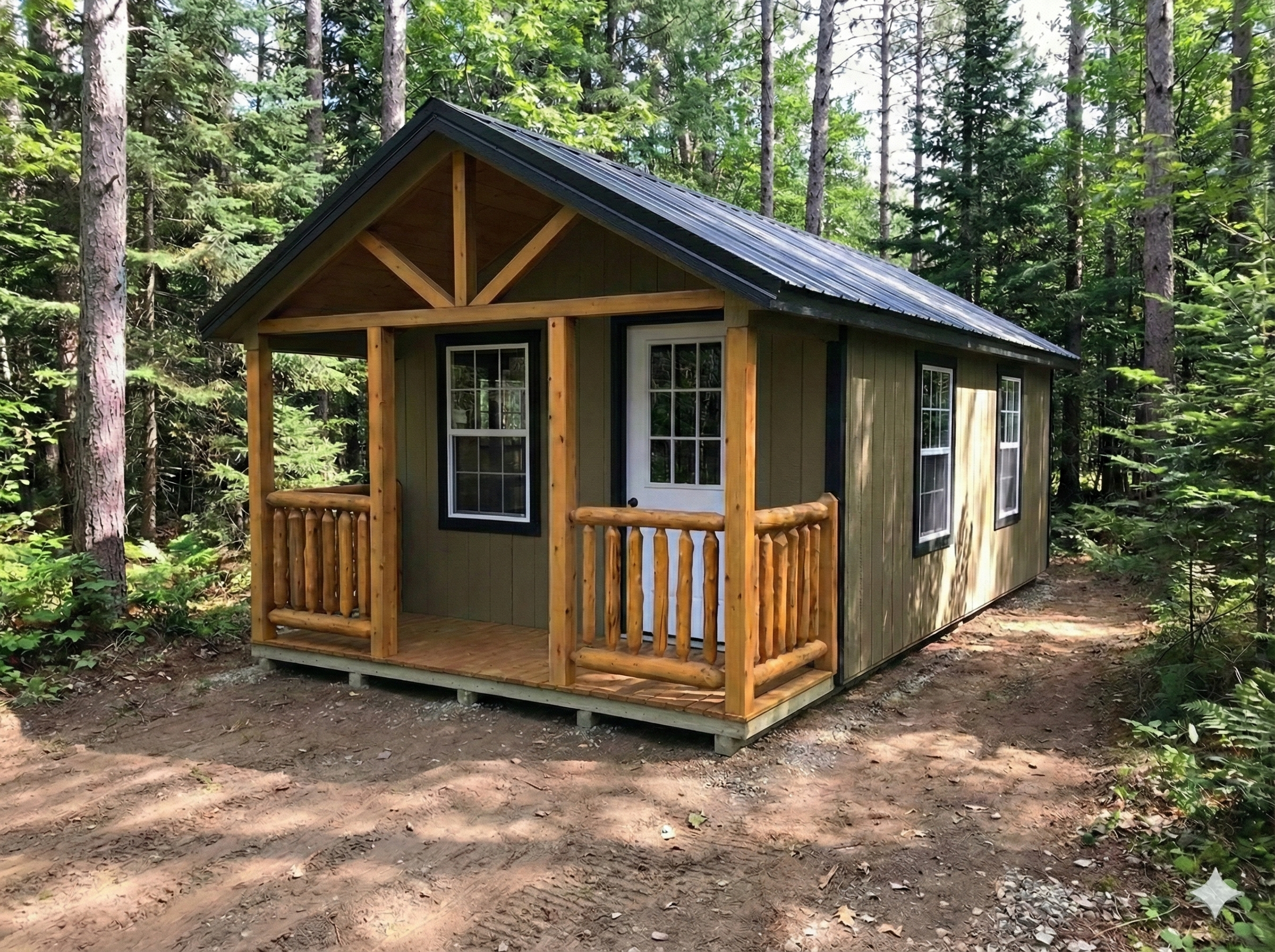 Designed for comfortable Maine living, this rugged 12Ă—24 Acadia camp from Hill View Mini Barns features a 4-ft porch, insulated, finished pine interior and plenty of windows for abundant natural light, making it ideal for seasonal retreats, hunting, or lakeside getaways. Built to withstand local weather and ready for Maine delivery and setup.