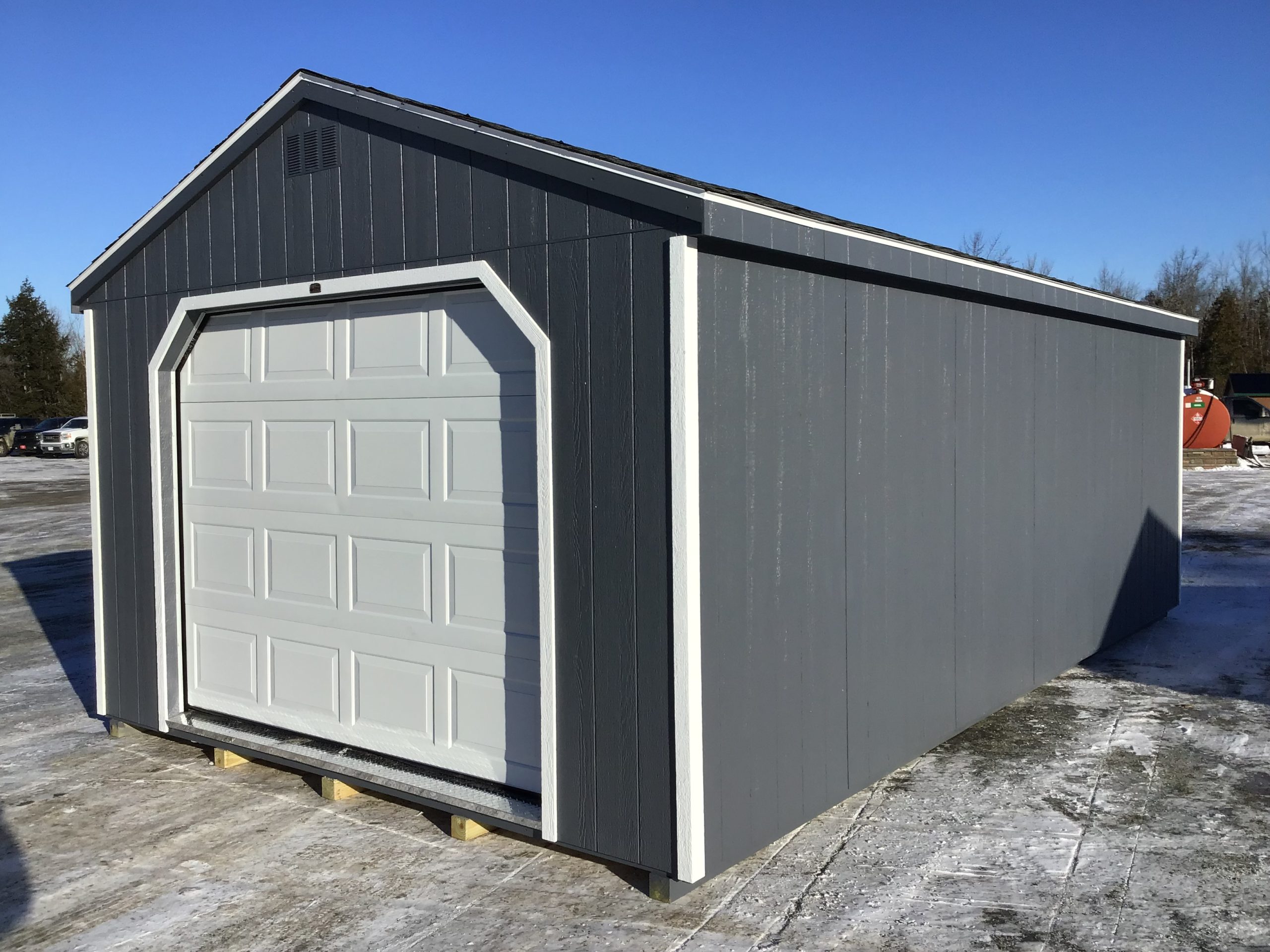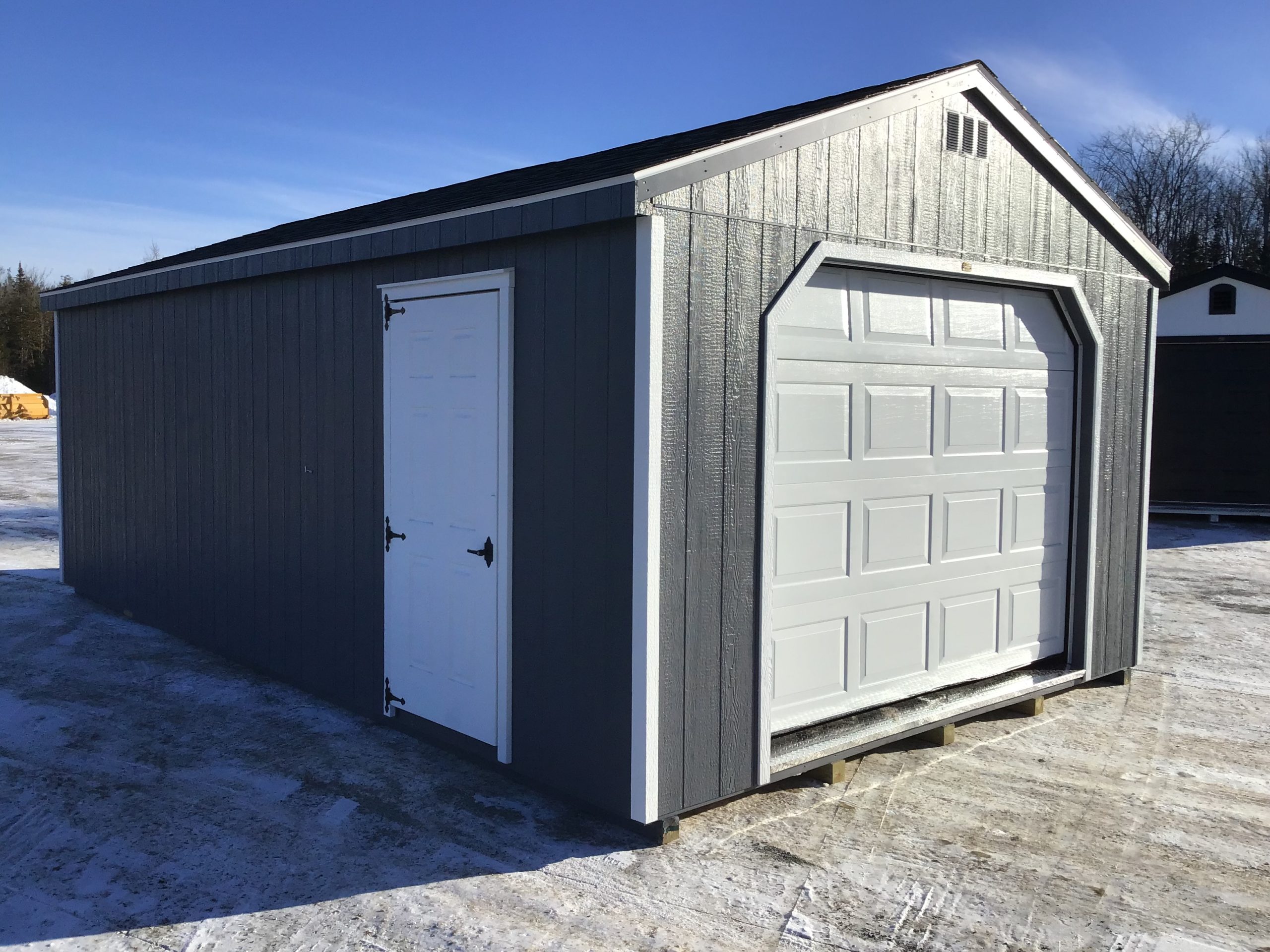 Designed for Maine living, this 13-4Ă—24 garage offers dependable space for vehicles, equipment, and weekend projects. A wide overhead garage door, convenient side entry, and generous interior space make it easy to use as storage, a workshop, or everyday garage space year-round.