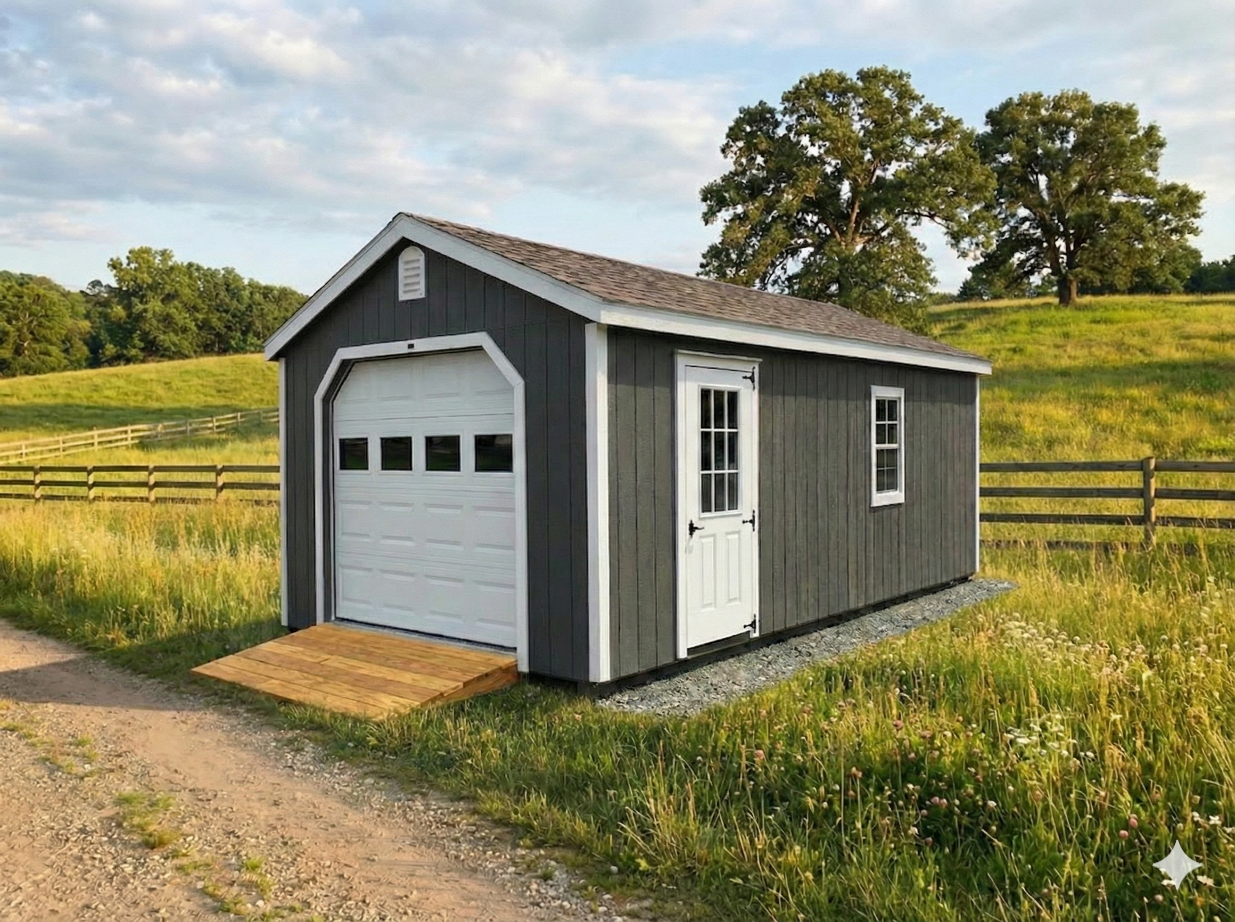 Give your vehicles, tools, and outdoor gear a rugged, weather-ready home with this 12×24 garage from Hill View Mini Barns. Built to stand up to Maine’s snow, wind, and rain, it offers generous space, easy access with wide doors, and durable construction for year-round protection and organization.
