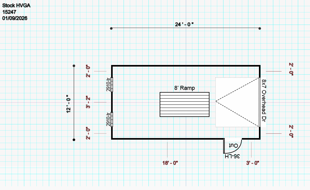 12×24 A-Frame Garage: This garage is designed and rated to hold anything from your Harley Davidson, to side by side or even your daily driver. The back wall two transom windows providing natural light in the back of the building.
