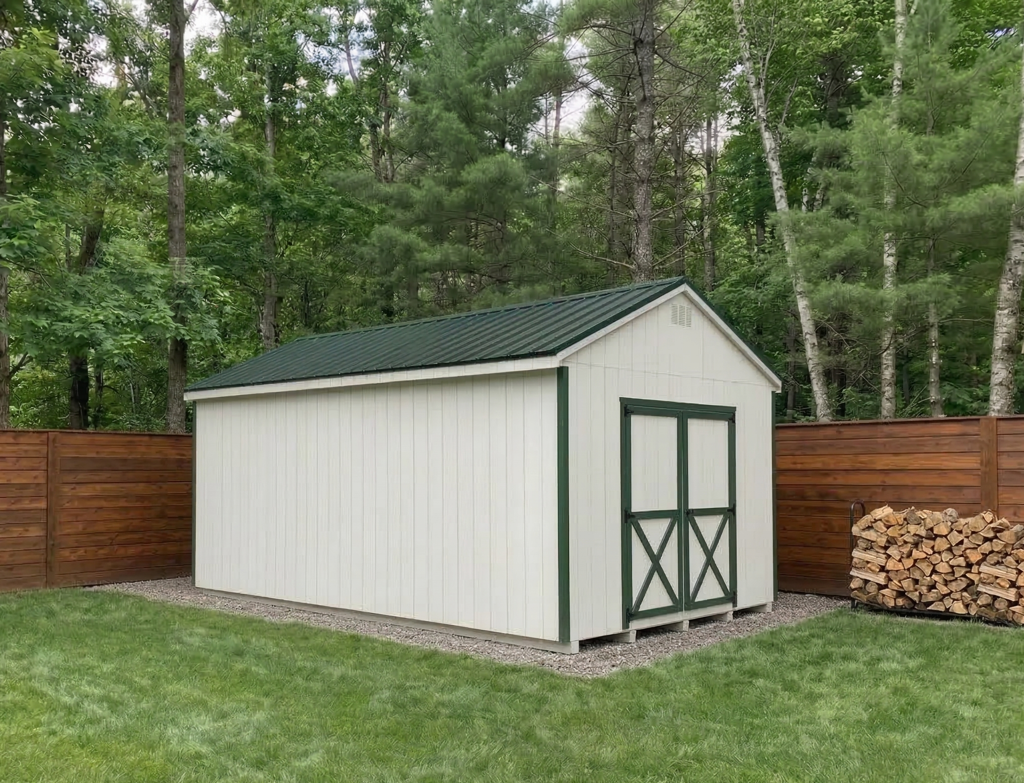 This 12×20 storage shed offers dependable protection for your vehicle, equipment, or projects. It features double doors with a pressure treated ramp, a 4′ loft, pressure treated skid foundation and a lifetime metal roof. An easy solution to your storage or workspace needs.