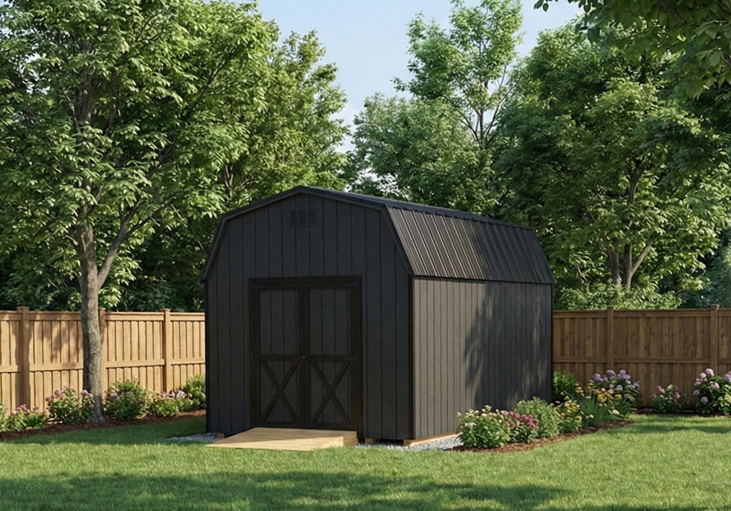 Our 10Ă—16 High Side Gambrel shed provides dependable storage year round. Tall sidewalls and a barn-style roof provide extra headroom, while wide double doors and a sturdy floor make storing equipment easy. Built with durable, weather-ready materials, it keeps tools, gear, and seasonal items protected year-round.