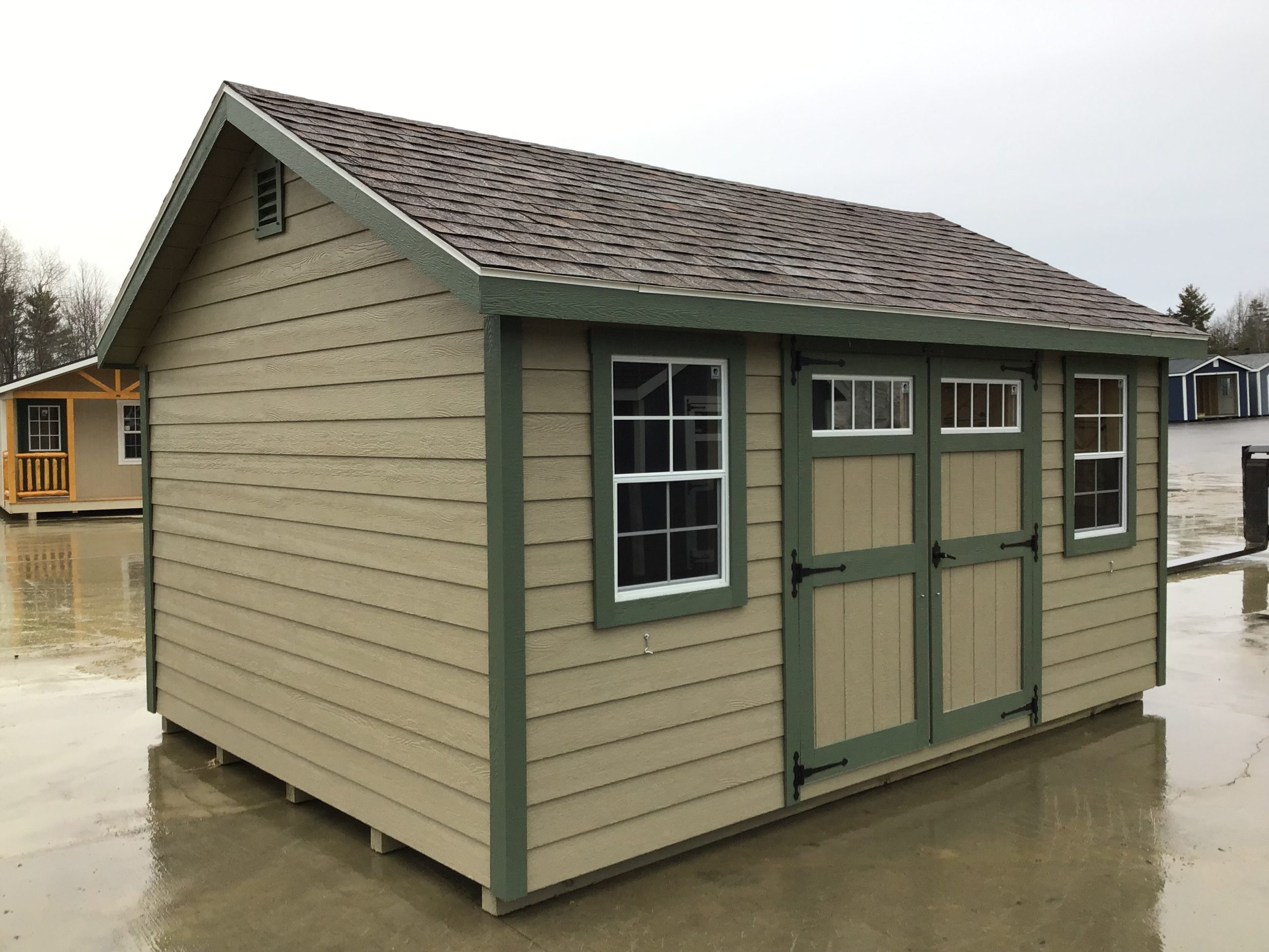 Building color: Khaki Trim color: Pequea Green Roof color: 2 Tone Brown 12×16 A Frame Classic ~ 6/12 Pitch roof w/ 7″ Gables and 7″ Overhangs ~ 6 Foot Double Door ~ 6 Foot Ramp ~ 2 24Ă—36 windows Rent to Own for: $493.08/24 mo $410.90/36 mo $336.19/48 mo Rent to own statement: Consumer does […]