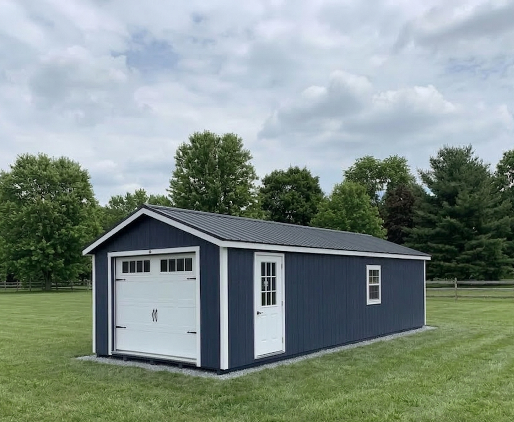 Get storage and workspace with this spacious 13’4″ x 36′ Garage, featuring a 9×7 overhead garage door with a pressure treated ramp, a side entry door, windows for natural light, and built on 5 pressure treated 4×4 skids, it’s ideal for vehicles, equipment, or projects.