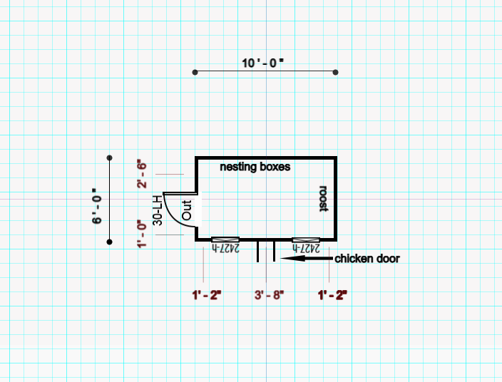 • 14×16 approx. chicken door (hinges on bottom to form ramp)
