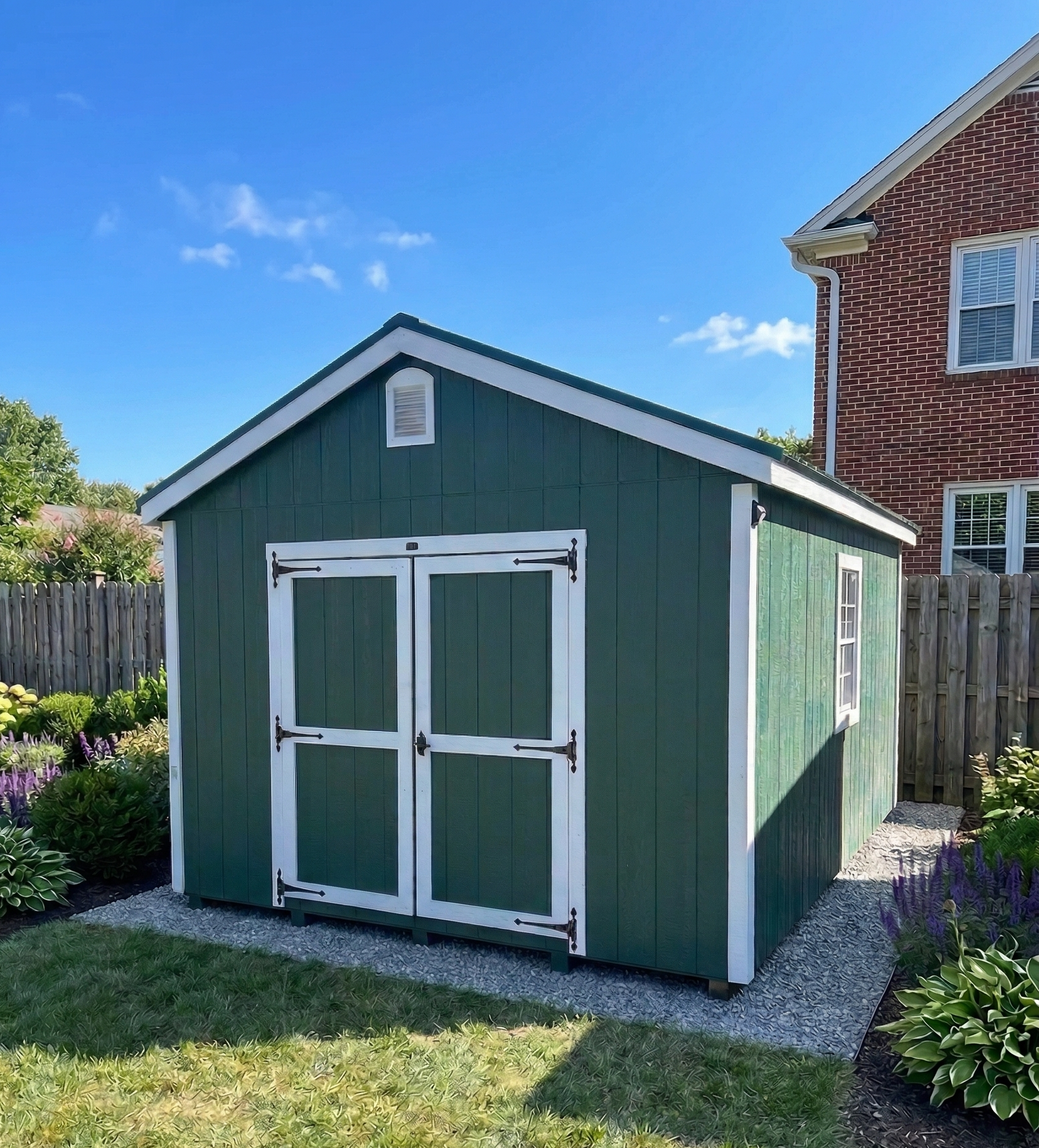 This 12×16 A-frame building offers classic style and practical storage. Built on 5 pressure treated skids, it features 6′ double doors, a pressure treated ramp, and windows for natural light. Well-built and ready to go, it provides reliable protection for your tools, equipment or projects.
