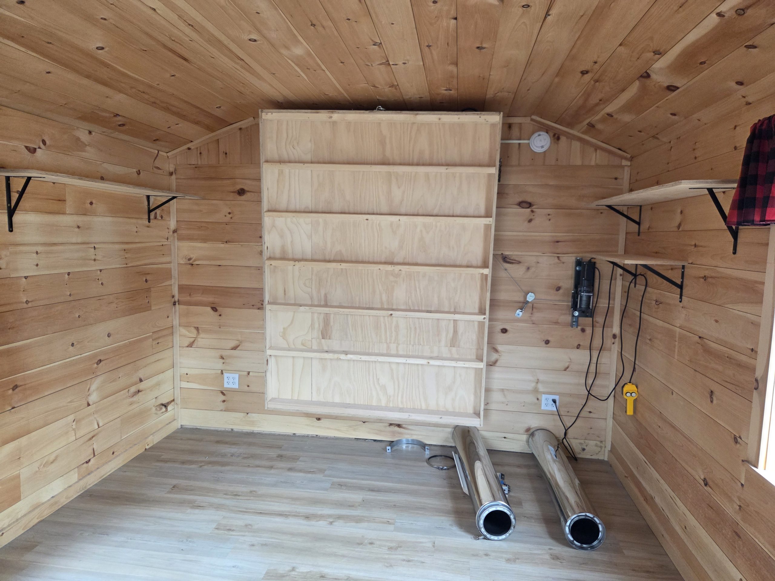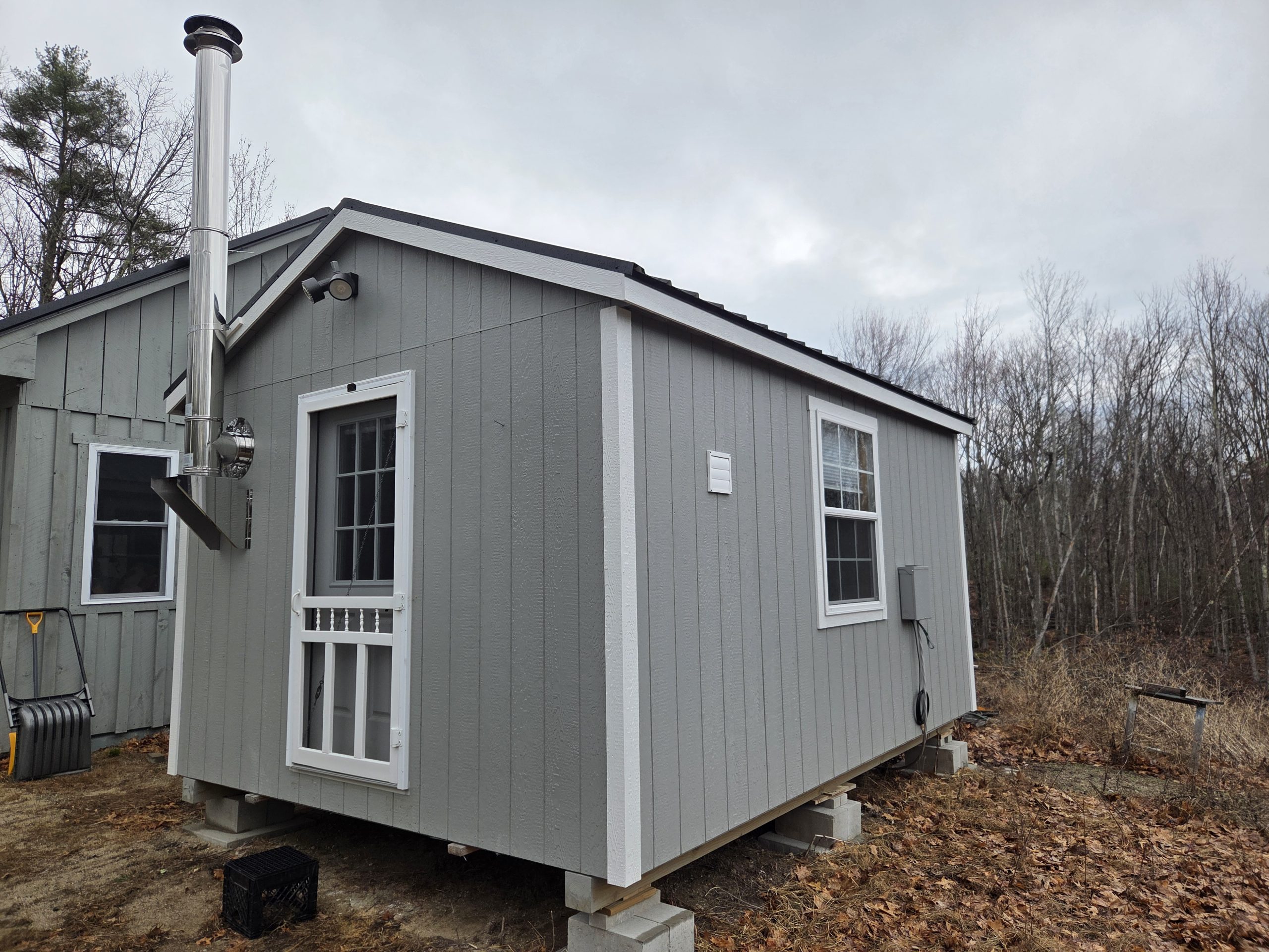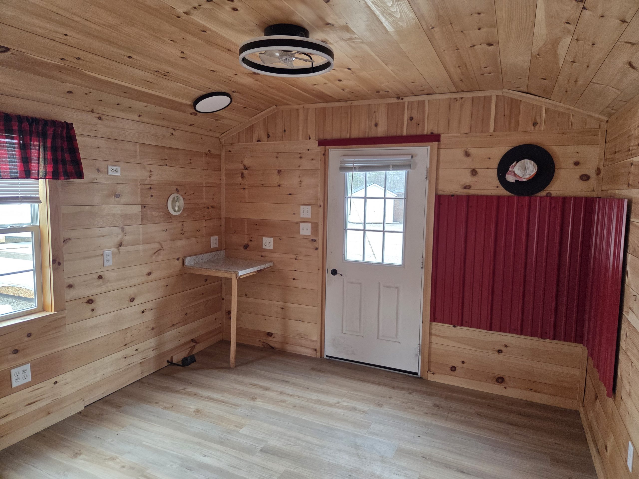 Small 12×16 Bunkhouse that is finished and ready for action. It is insulated with finished pine on the interior. Fully wired, a 100 amp Panel and complete with a plug for a kitchen stove. This cozy space is ready to heat as soon as you hook up your wood stove. NOTE: The interior was not finished by Hill View and the unit comes with no warranty.